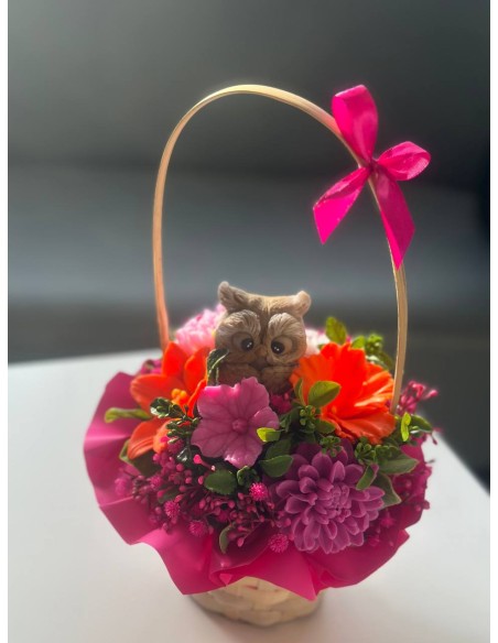 Centralnym elementem kompozycji jest urocza sowa, dzięki której całość staje się symbolicznym, oryginalnym i niezwykle przytulnym prezentem – idealnym na Dzień Nauczyciela lub inne wyjątkowe okazje.