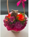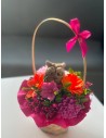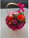 Wyjątkowa kompozycja wykonana ręcznie z mydła glicerynowego, umieszczona w ozdobnym koszyku. W środku znajduje się starannie dobrany miks kwiatów w różnorodnych, jesiennych odcieniach – od subtelnych pasteli po ciepłe barwy różu, fioletu i pomarańczy. Kwiaty roztaczają delikatny, kwiatowy zapach i przez długi czas zachowują swój urok.
