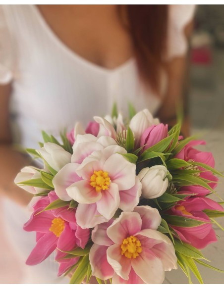 Mydlany bukiet jasnoróżowych magnolii o delikatnym kwiatowym zapachu, umieszczony w eleganckim prezentowym opakowaniu.